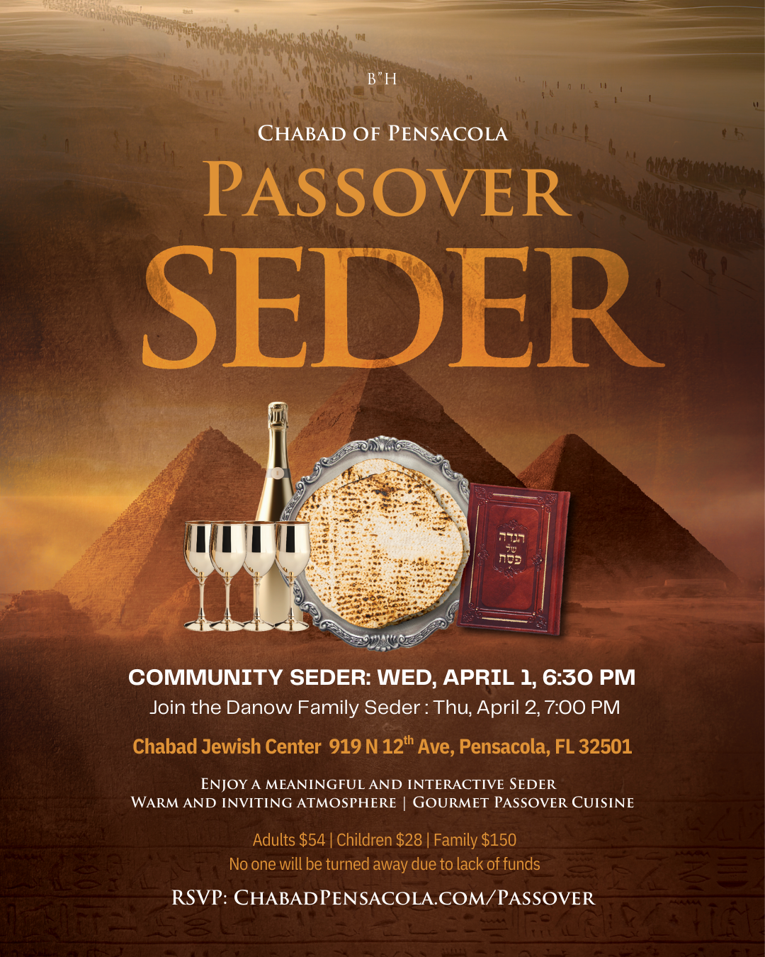 We are excited to invite you to our beautiful seders, the grand community seder on the first night of Passover, Wed, April 1st, and the second night, at the Danow family seder on Thu, April 2nd.
